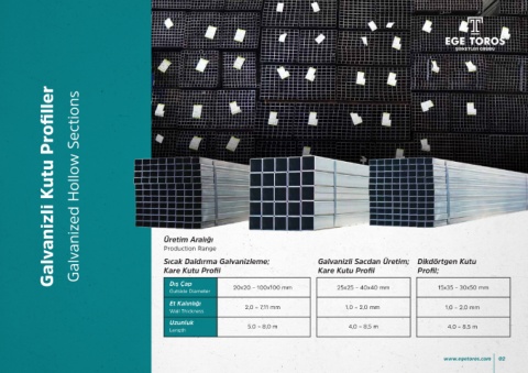 Üretim Aralığı Anma Ebat Et Kalınlığı (mm) Sıcak Daldırma Galvanizleme; Galvanizli Sacdan Üretim; Dikdörtgen Kutu